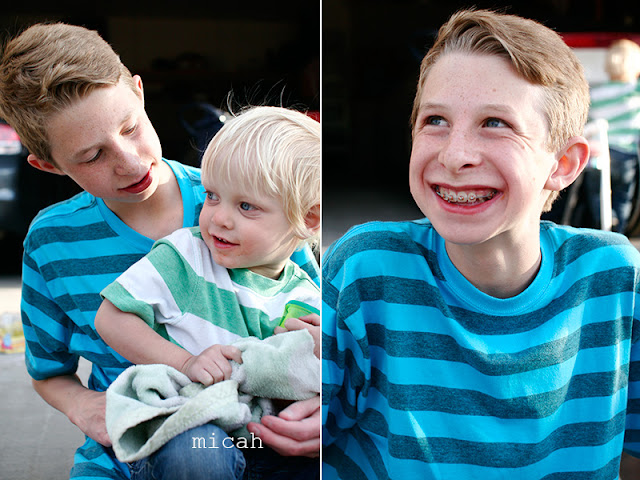 (FYI: Travis' brother isn't in a wheel chair. The boys just like to push him around in it.)